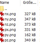 | Die sechs einzelnen Bilder aus dem Cubemap Generator |