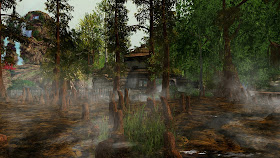 Das Windlight auf der Region folgt dem Second Life Tagesrhythmus. Während meinem Besuch wurde es dann dunkel und ich musste auf ein eigenes Windlight wechseln. Deshalb sehen meine Fotos bei der Umwelt nicht einheitlich aus. Und sowohl der Regionsstandard als auch meine eigene Wahl, waren eher ungünstig für Fotos, denn gerade das sehr schöne Pferd ist auf allen meinen Fotos irgendwie zu dunkel.