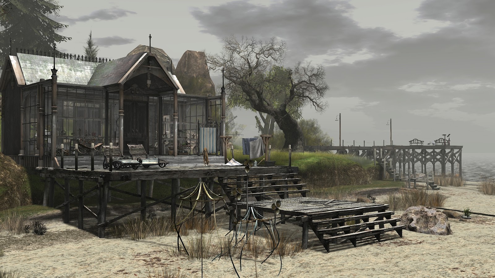 Apropos Prims. Der Abandoned Vacation Spot ist eine Homestead-Region mit moderater Einstufung. Das scheint nach einer Besichtigung fast unglaubwürdig, denn ich hatte mit zunehmender Dauer meines Aufenthalts immer mehr den Eindruck, eine gut ausgebaute Full-Region zu erkunden. Der Pier, von dem ich hier so schwärme, ist ja nur der Eyecatcher rund um den Landepunkt.