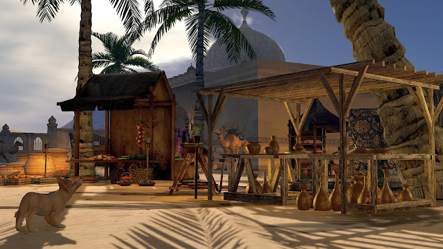 Auch NOUR ist wieder eine Homestead-Region mit moderater Einstufung. Die Ownerin ist Camila Runo. Aufgeteilt ist die Region in drei Bereiche. Eine Oase mit Beduinenzelten und kleinem See im Westen, ein arabisches Dorf mit Markt und großem Badehaus im Nordosten und ein Sultanspalast im Süden.